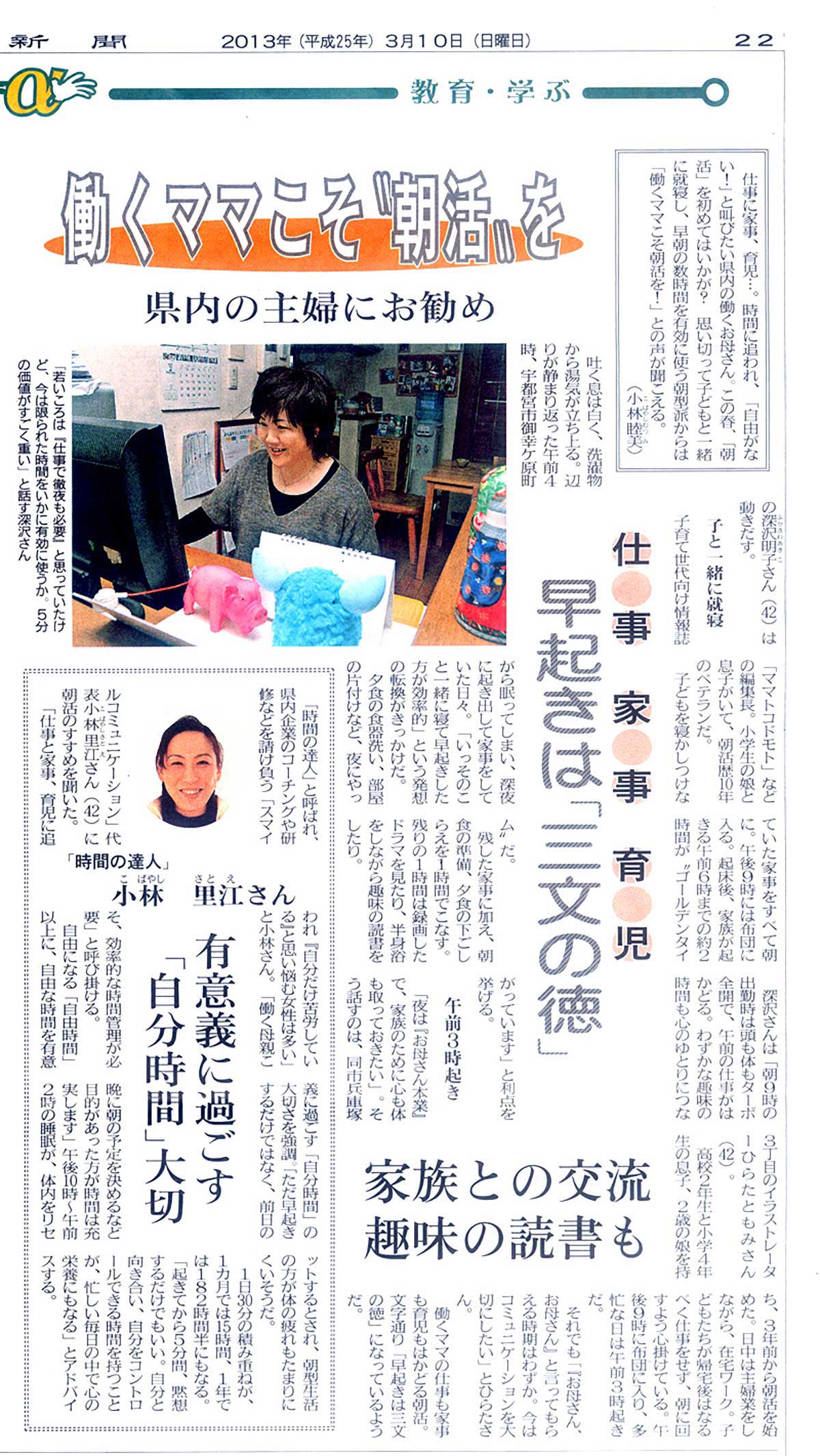 当社専務深澤明子が「働くママこそ朝活を」の記事で
